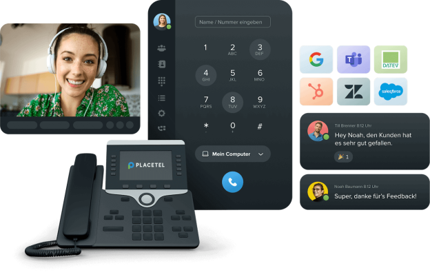 Placetel ist sofort startklar für jede Art von Teamwork. Schnell eingerichtet, können Sie direkt über Ihre Cloud Telefonanlage anrufen oder in verteilten Teams Nachrichten schreiben und in Video-Meetings zusammenarbeiten. Oder alles auf einmal. In einer Anwendung, mit der Ihr Business durch die Decke geht.
