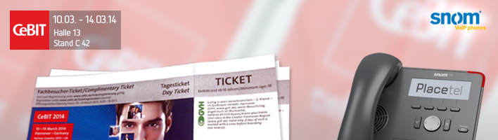 Placetel ist dieses Jahr auf der CeBIT als snom-Partneraussteller vertreten. Kommen Sie vorbei und erfahren Sie mehr über die Placetel Telefonanlage und neue Funktionen wie zum Beispiel den UC-Client!