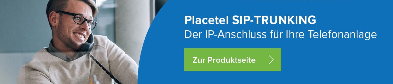 Verfügen Sie noch über eine analoge Telefonanlage und wollen der ISDN-Abschaltung zuvorkommen? Wollen Sie Ihren Verwaltungsaufwand für Ihre IP-fähige Telefonanlage reduzieren? Dann informieren Sie sich jetzt über das SIP-Trunking von Placetel. In der 30-tägigen, kostenlosen Testphase können Sie sämtliche Funktionen sowie die Kompatibilität mit Ihrer vorhandenen Telefonanlage ausgiebig testen.