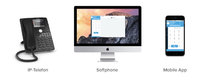 Für die Nutzung einer Business-Telefonanlage aus der Cloud ist die Anschaffung zusätzlicher Hardware im Allgemeinen nicht erforderlich. Ein IP-Telefon bietet zwar einen gewissen Komfort und zusätzliche Features, doch Sie können genauso gut Ihren PC, Laptop oder Ihr Smartphone zum Telefonieren verwenden. Hierfür muss lediglich das benötigte Softphone bzw. die App auf Ihrem PC oder Smartphone installiert werden.