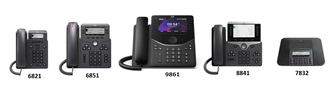 | Cisco 6821 | Cisco 6851 | Cisco 8841 | Cisco 9861 | Cisco 7832 | |