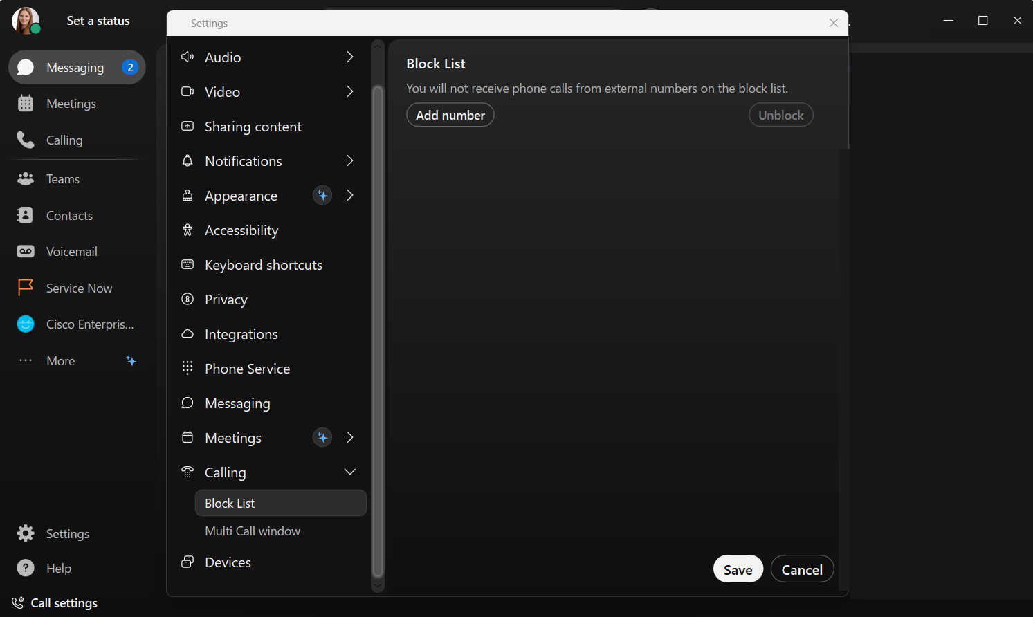 Nummer blockieren im Webex Client