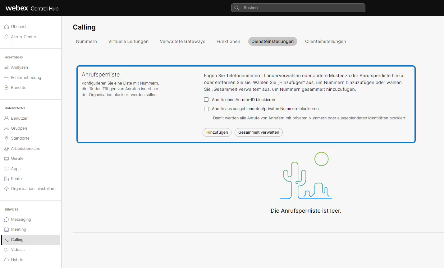 - Komplette Verwaltung über den Webex Control Hub