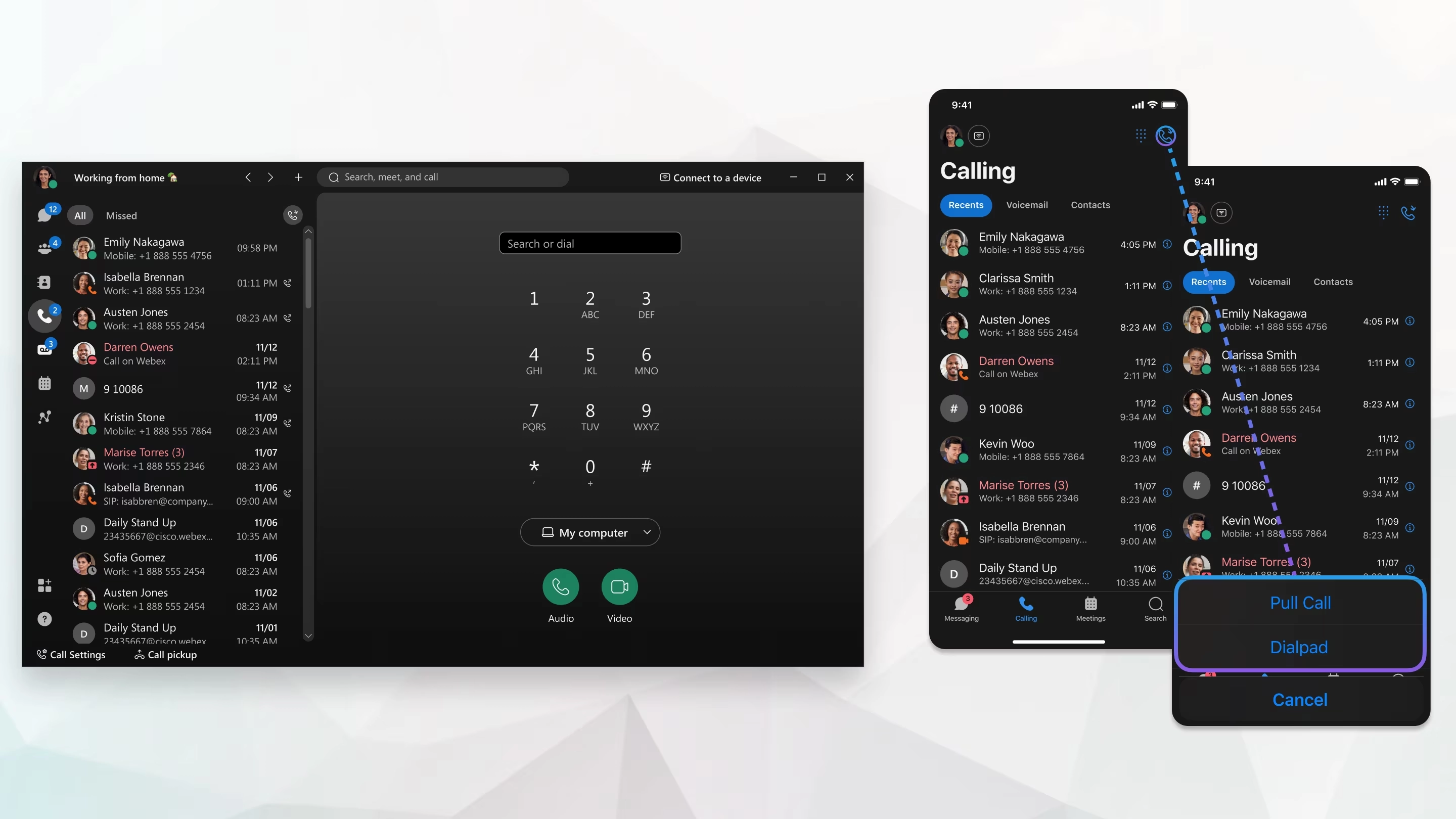 Sie können einen aktiven Anruf von Ihrer Desktop-App einfach in Ihre mobile App verschieben und das Gespräch unterwegs führen. Oder wenn Sie bereits mit einem Anruf unterwegs waren und zum Büro zurückkehren, können Sie den Anruf von Ihrer mobilen App in Ihre Desktop-App verschieben.