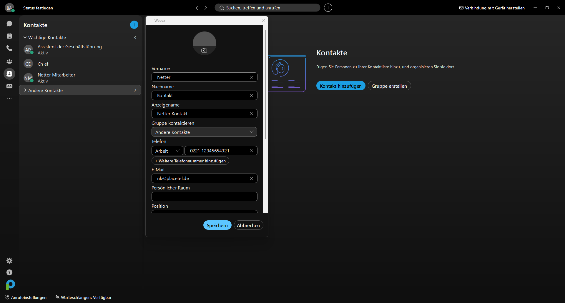 - Automatische Synchronisierung Ihrer Kontakte über alle Webex Clients hinweg (Desktop & Mobile)
