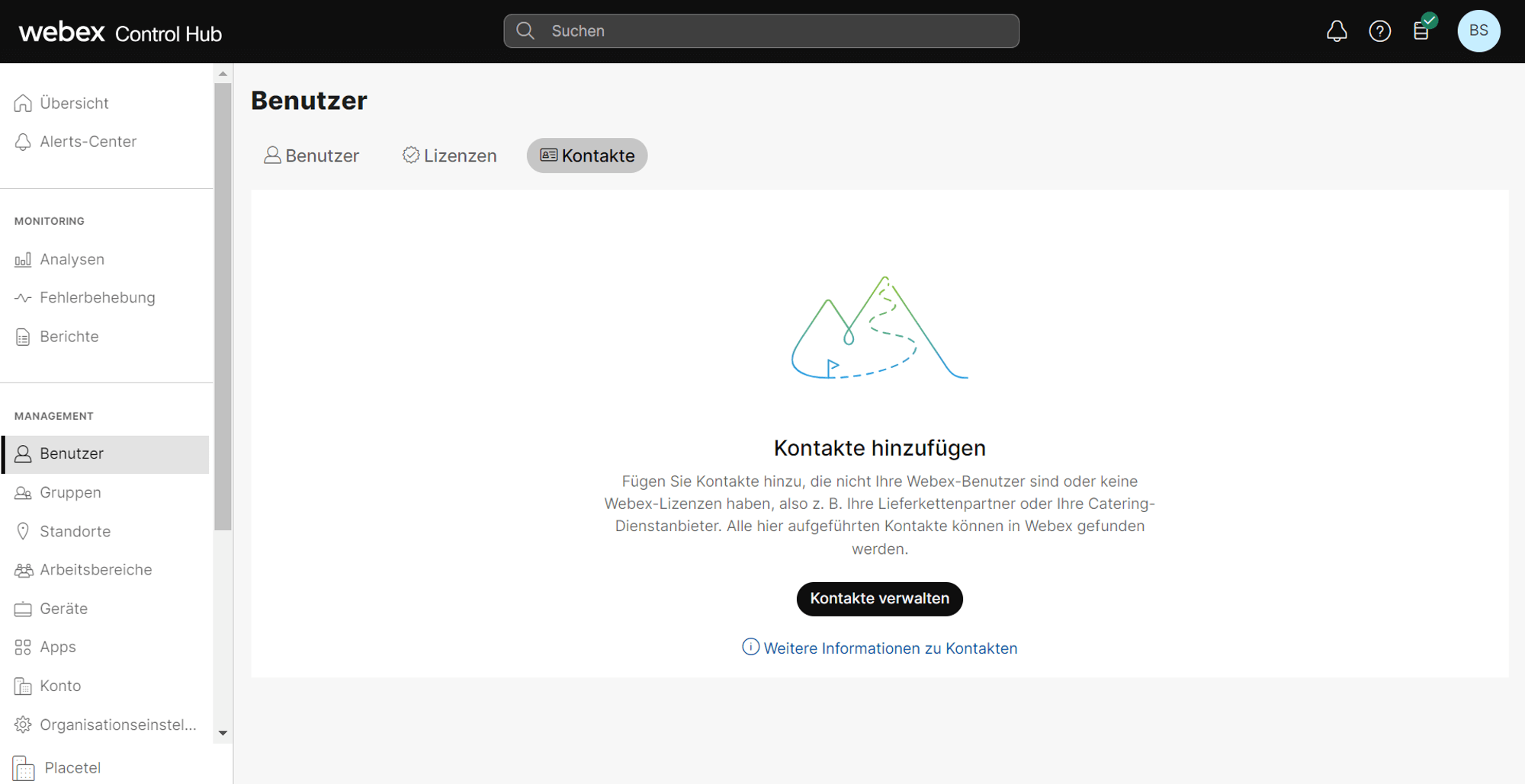 Ihre Kontakte können Sie ganz einfach über den Control Hub verwalten. Alle aufgeführten Kontakte können auch in Webex gefunden werden.