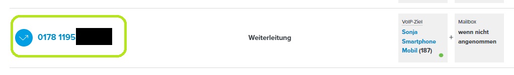 Rufnummer in der Rufnummernübersicht