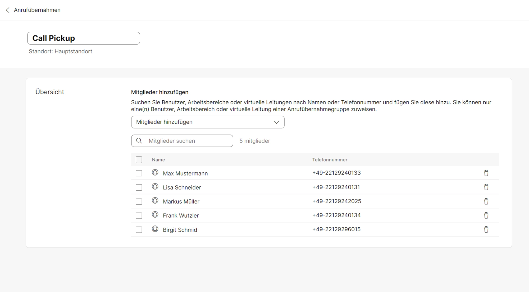 Innerhalb der Pickup-Gruppe kann jeder eingehende Anrufe eines anderen annehmen. Klingelt zum Beispiel das Telefon bei Mitarbeiter A und er ist gerade nicht an seinem Arbeitsplatz, wird der Anruf auch Mitarbeiter B signalisiert und dieser kann den Anruf übernehmen und beantworten.