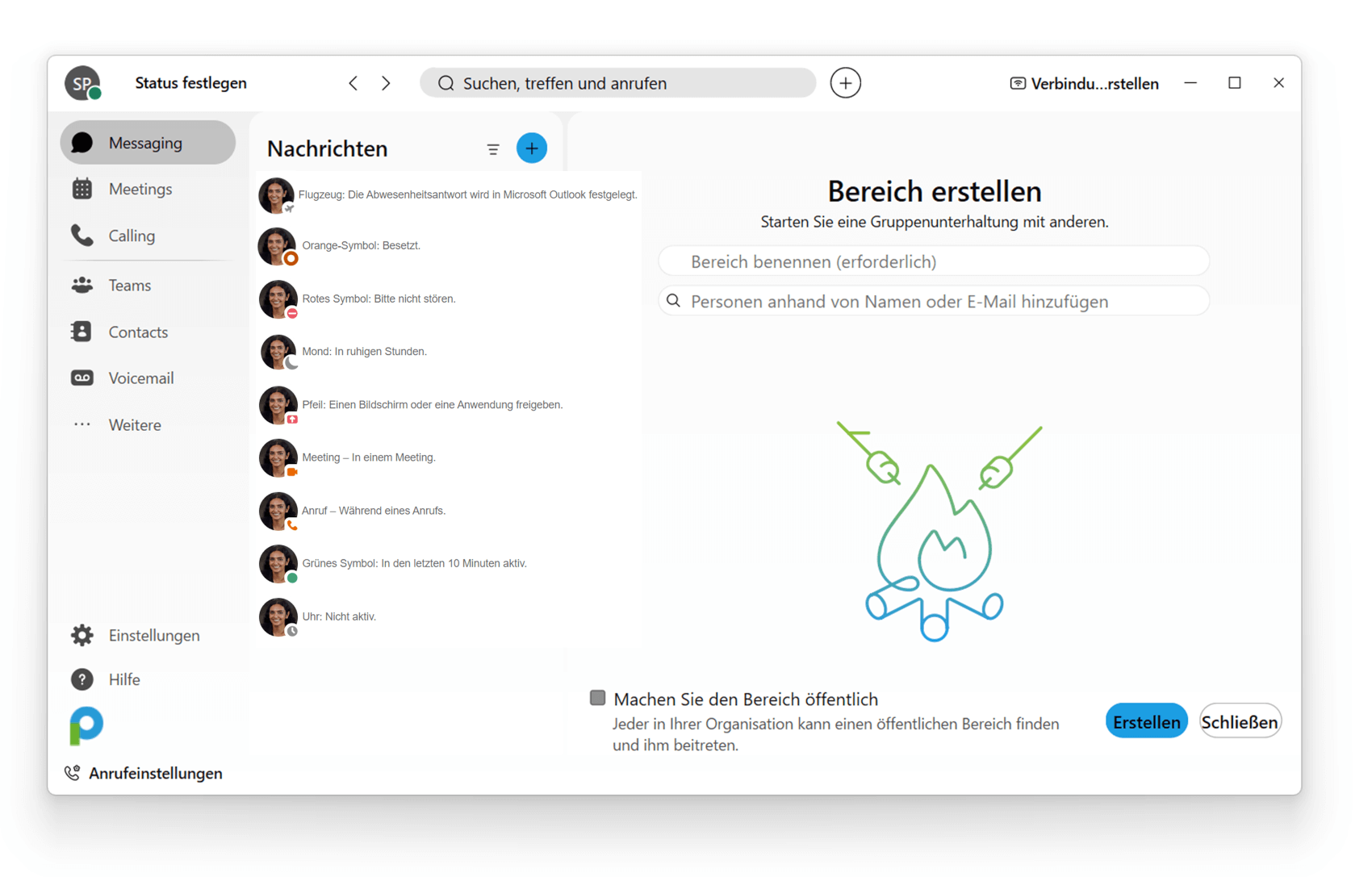 Zusätzlich zum automatisch angezeigten Präsenzstatus gibt es weitere Verfügbarkeitsstatus und Locations, die Sie auswählen können: