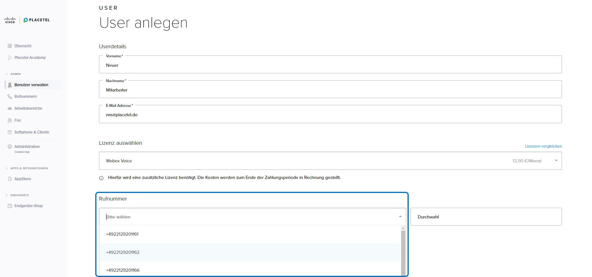 Der Anrufempfänger kann auf Wunsch sofort erkennen, wer der Anrufer ist. Bei Webex können Sie jedem Mitarbeiter eine eigene Rufnummer zuweisen.
