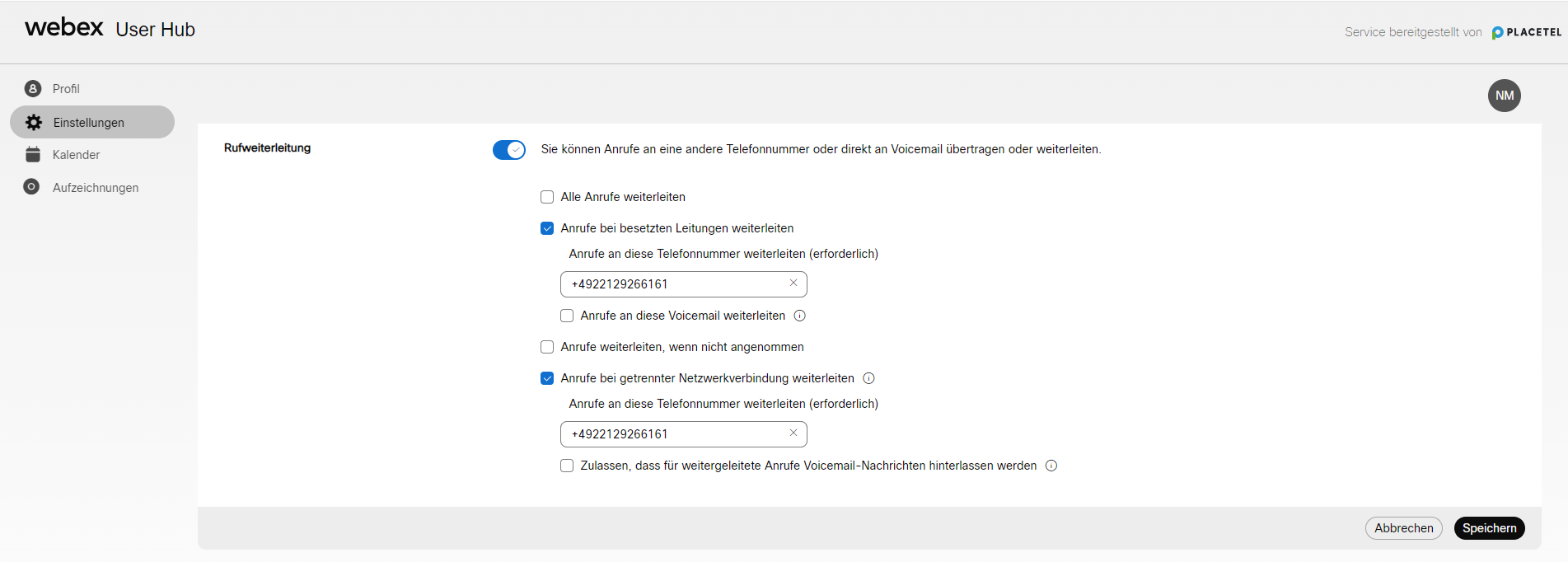 - Weiterleitung von Anrufen, wenn diese nicht entgegengenommen werden