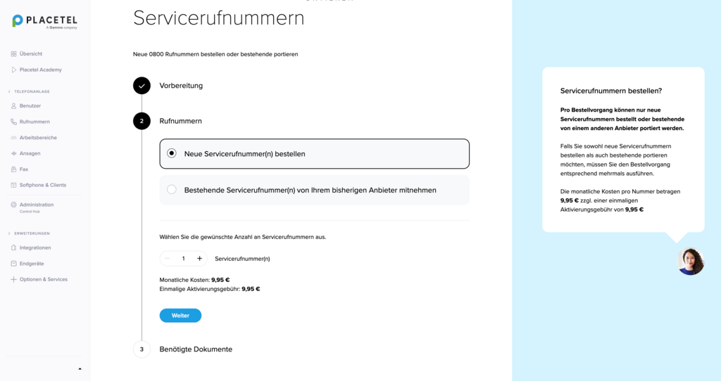 In nur wenigen Schritten können Sie sowohl einzelne Telefonnummern als auch ganze Rufnummernblöcke kostenlos zu Placetel portieren.