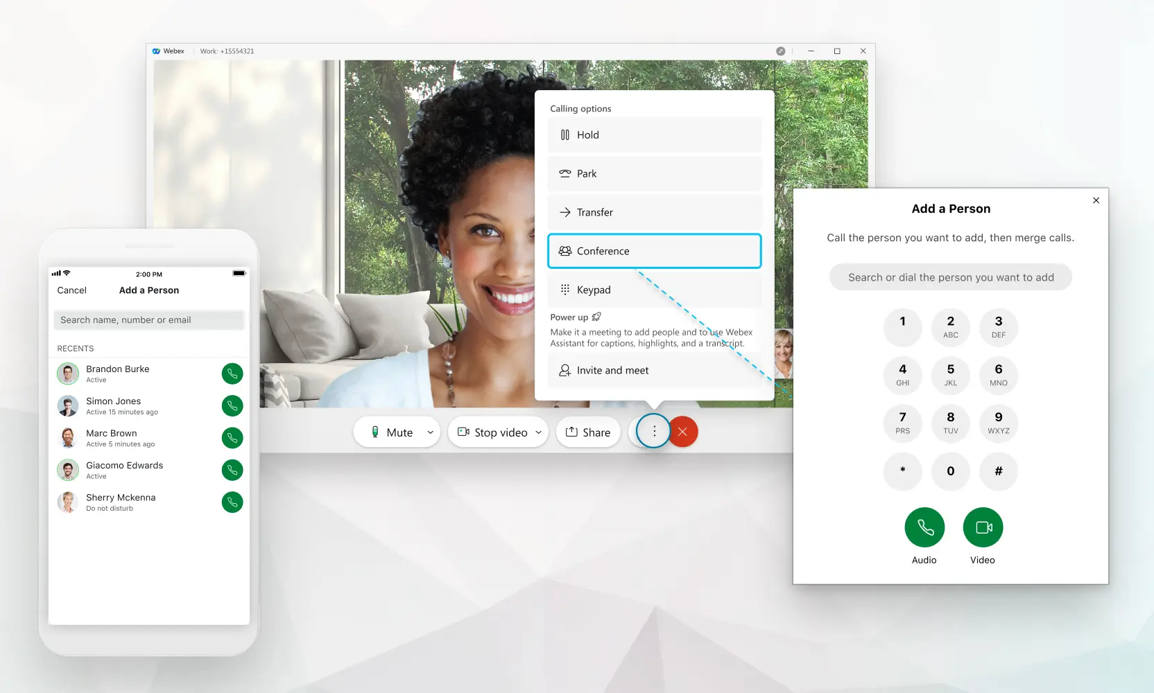 - Schnelle Einrichtung von Konferenzen über den Webex Client