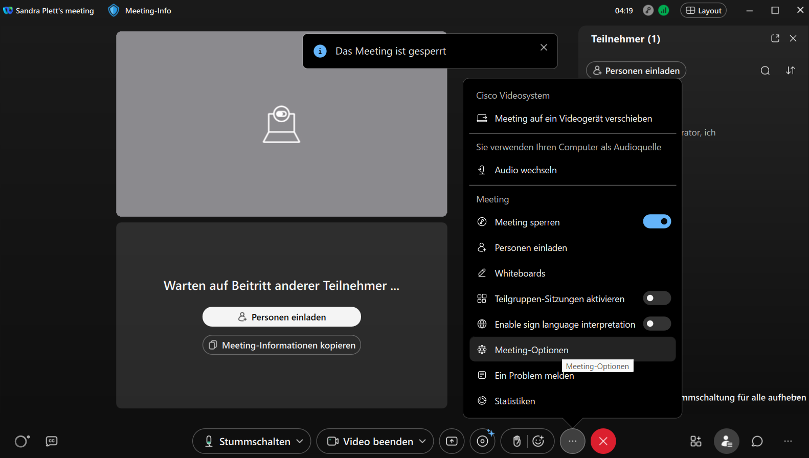 - Abschließen des persönlichen Meetingraums