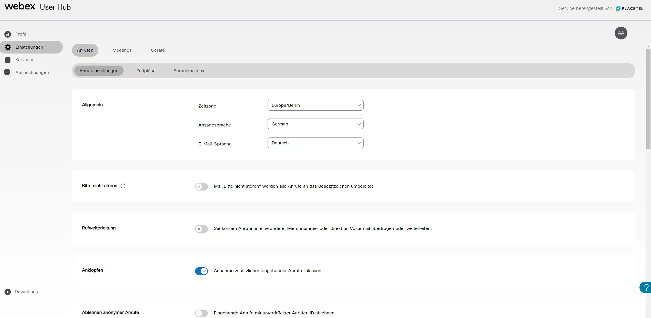 Im Placetel Order Portal können Sie u.a. folgende Einstellungen vornehmen: