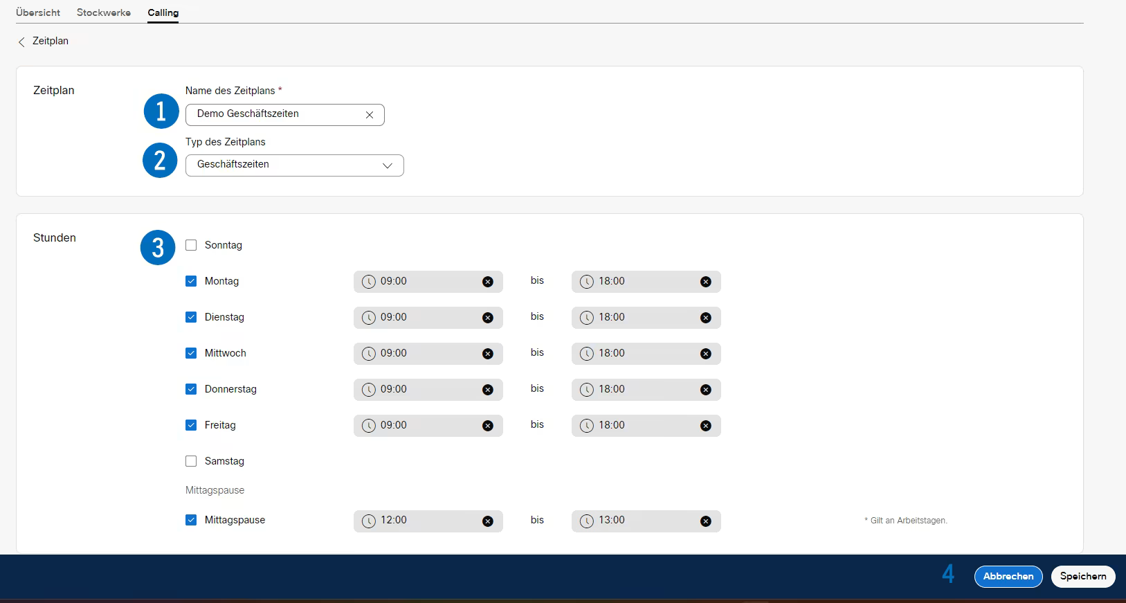 - Jeder Mitarbeiter kann sich einen eigenen Zeitplan anlegen