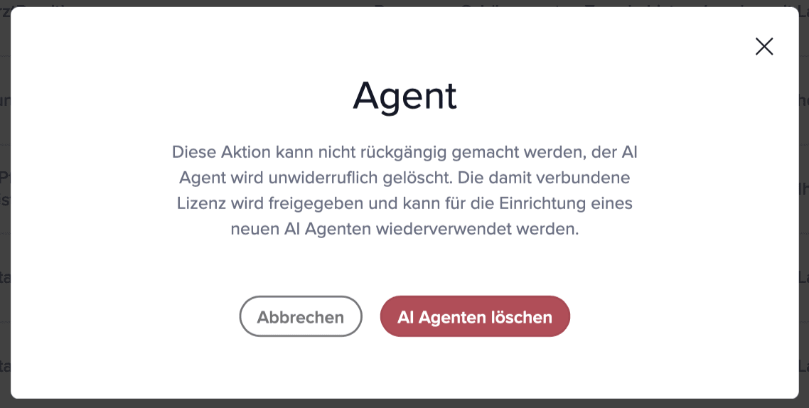 Klicken Sie anschließend auf AI Agenten Löschen.