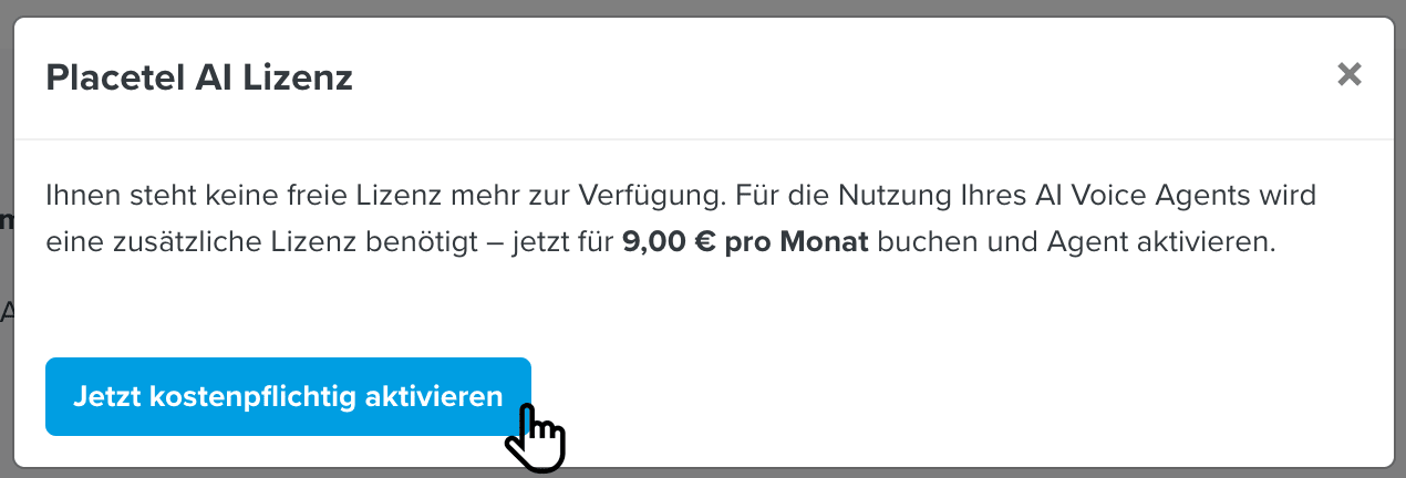 Bitte beachten Sie, dass die ersten 30 Tage nach Aktivierung von Placetel AI die AI-Rufnummern kostenlos sind.