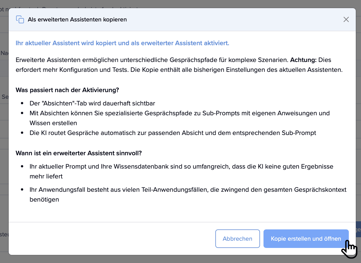 Ein erweiterter Assistent ist eine Kopie des bestehenden Assistenten.