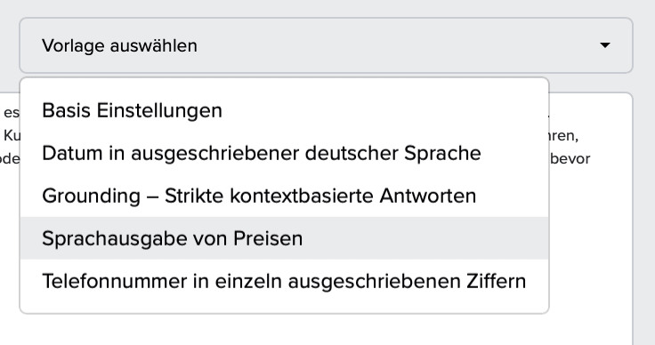 Um beispielsweise sicherzustellen, dass der AI-Agent 1, 2, 3 korrekt ausspricht, legen wir fest, dass der Bot Zahlen so speichern/verwenden soll, wie sie sind, aber bei der Antwort sollte er sie als eins, zwei, drei wiedergeben. Analog dazu für 1. -> erstens, 2. -> zweitens.