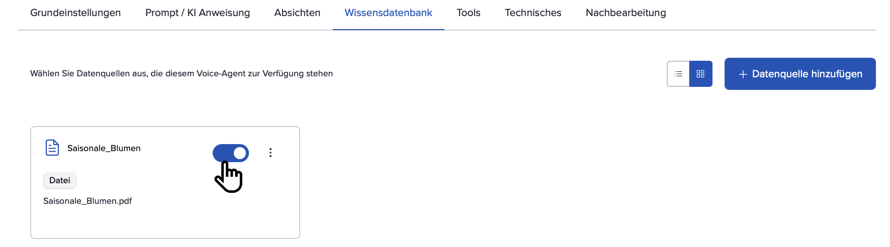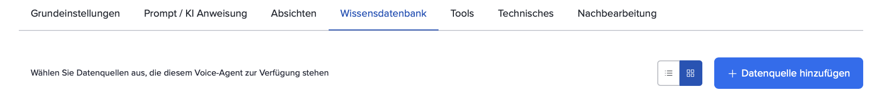 Navigieren Sie zum Tab Wissensdatenbank und Klicken Sie auf Datenquelle hinzufügen.