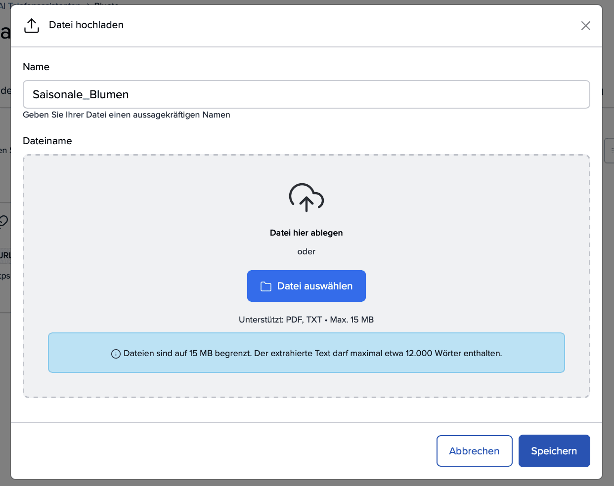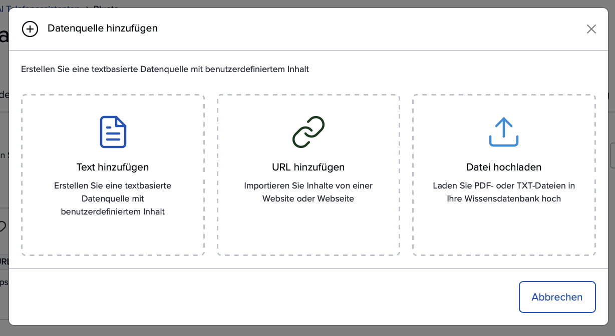 Auf dieser Seite erklären wir Ihnen Schritt für Schritt, wie Sie zusätzliches Wissen hochladen und anschließend verknüpfen können.