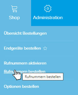 Die Portierung Ihrer bisherigen Rufnummern oder die Neubestellung von neuen Rufnummern erfolgt im Bereich Shop → Rufnummern bestellen.