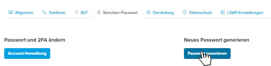 Klicken Sie auf den Tab und danach auf den blauen Passwort generieren-Button. Wir schicken dann eine automatische E-Mail an die E-Mail Adresse des entsprechenden Benutzers.