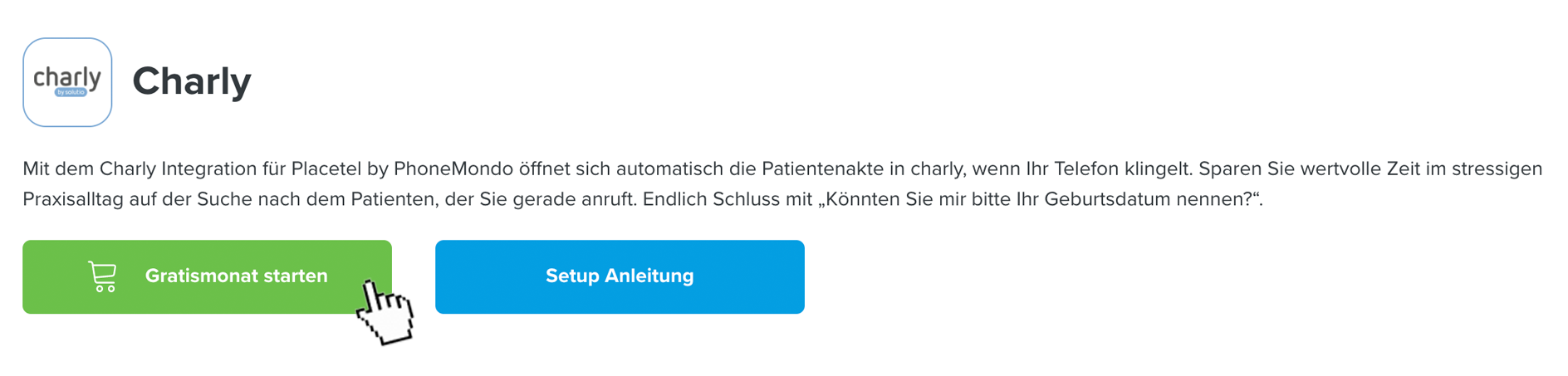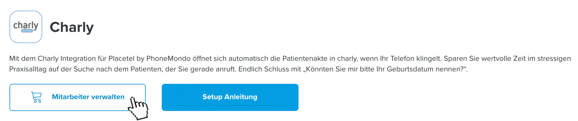 - Placetel: Wählen Sie Integrationen → charly by PhoneMondo