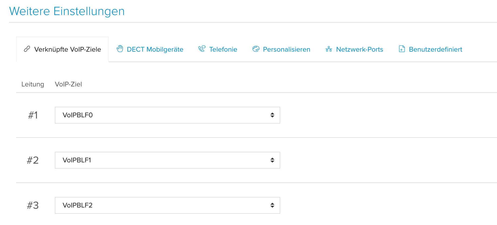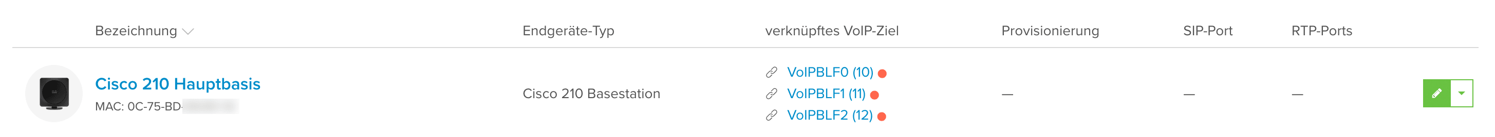 Verknüpfen Sie die VoIP Ziele mit der Basis. Sie brauchen für jedes Handgerät ein eigenes VoIP Ziel. Sie können derzeit maximal 12 VoIP Ziele autoprovisionieren.