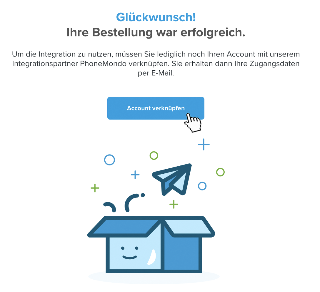 Placetel: Lizenzvertrag akzeptieren - Placetel: Klicken Sie auf Account verknüpfen. Sie werden jetzt zur PhoneMondo Seite weitergeleitet.
