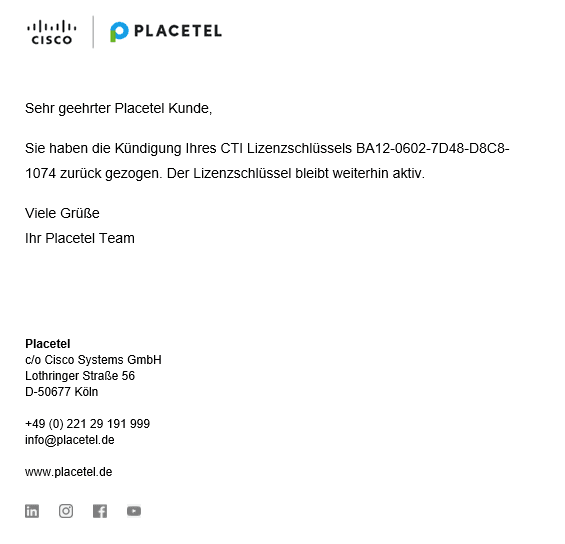 Kündigung: CTI für Cisco, Vermittlungsarbeitsplatz und CTI Client Windows