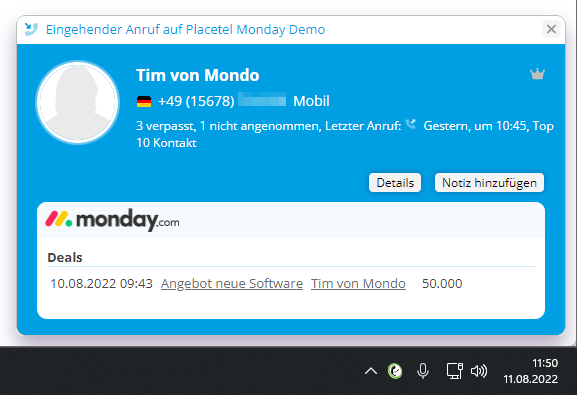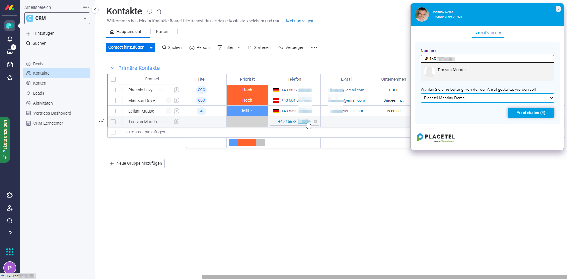 Mit unserem Partner PhoneMondo können Sie monday.com mit Placetel verbinden. PhoneMondo ist ein Multi-Integrator mit dem Sie mehrere CRM Systeme anbinden können. Wählen Sie daher später bei der Konfiguration das korrekte CRM System aus.