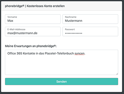 2. phonebridge.io: Nach erfolgreicher Bestellung legen Sie Ihren persönlichen phonebridge® Account an (E-Mail und Passwort).