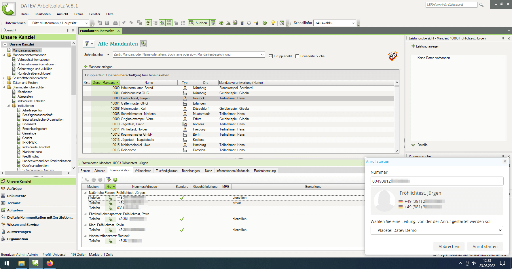 Sie können jetzt ausgehende Calls initiieren, in dem Sie auf die jeweilige Rufnummer in einem Kontakt klicken.