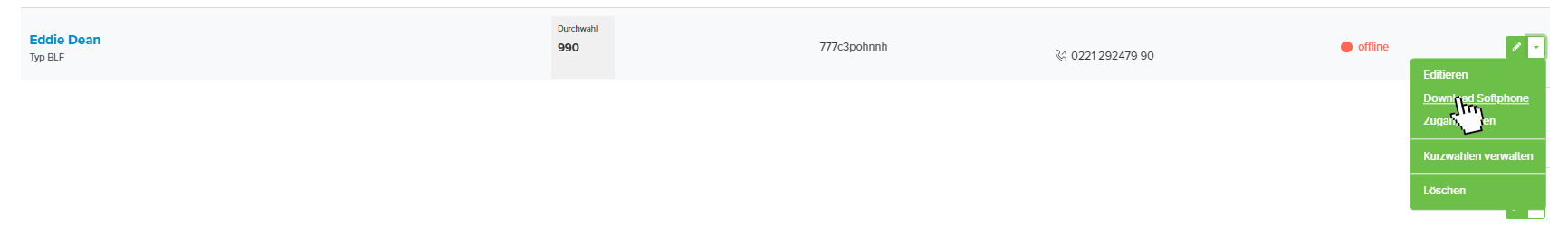 - Klicken Sie hier im Dropdown-Menü bei einem VoIP-Ziel auf Download Softphone.
