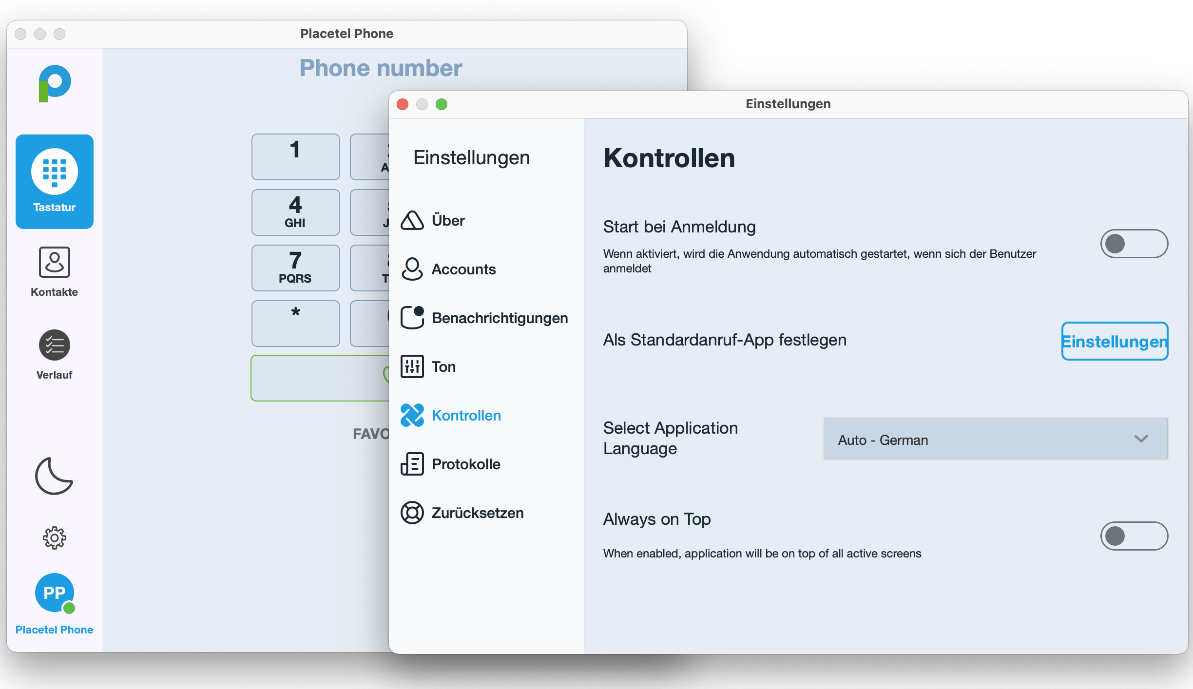 Always on Top - Wenn diese Funktion aktiviert ist, werden alle Ihnen alle neuen Mitteilungen auf Ihren Bildschirm angezeigt, auch wenn Sie andere Programme geöffnet haben. Die Meldungen des Softphones sind dann „on top“.