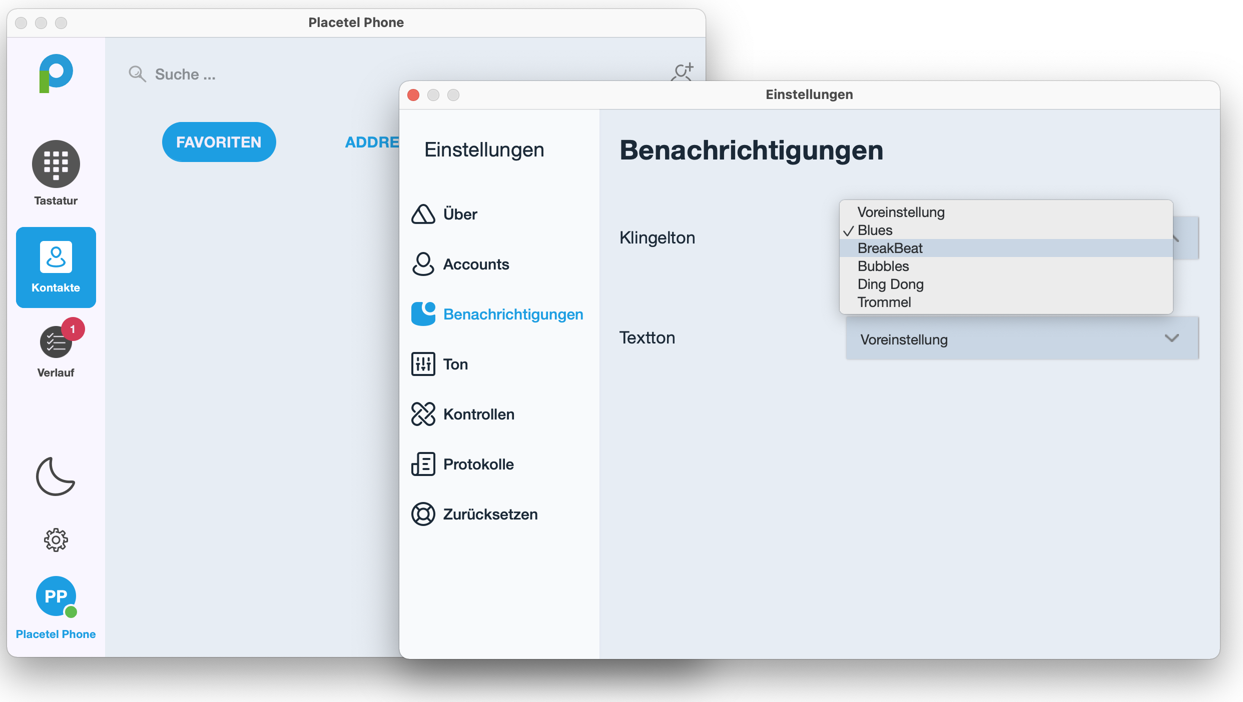 Klingelton - Legen Sie hier den Ton fest, der bei eingehenden Anrufen zu hören ist. Klicken Sie dafür auf das Dragdown-Menü und wählen Sie aus der Liste den Ton aus, den Sie verwenden möchten.