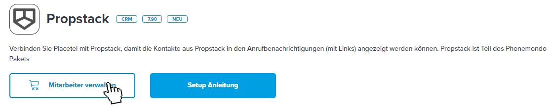 Mit unserem Partner PhoneMondo können Sie Propstack mit Placetel verbinden. PhoneMondo ist ein Multi-Integrator mit dem Sie mehrere CRM Systeme anbinden können. Wählen Sie daher später bei der Konfiguration das korrekte CRM System aus.