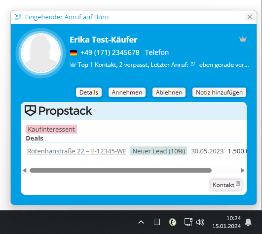 Auch bei eingehenden Anrufen, werden Ihnen alle Kontaktdaten angezeigt.