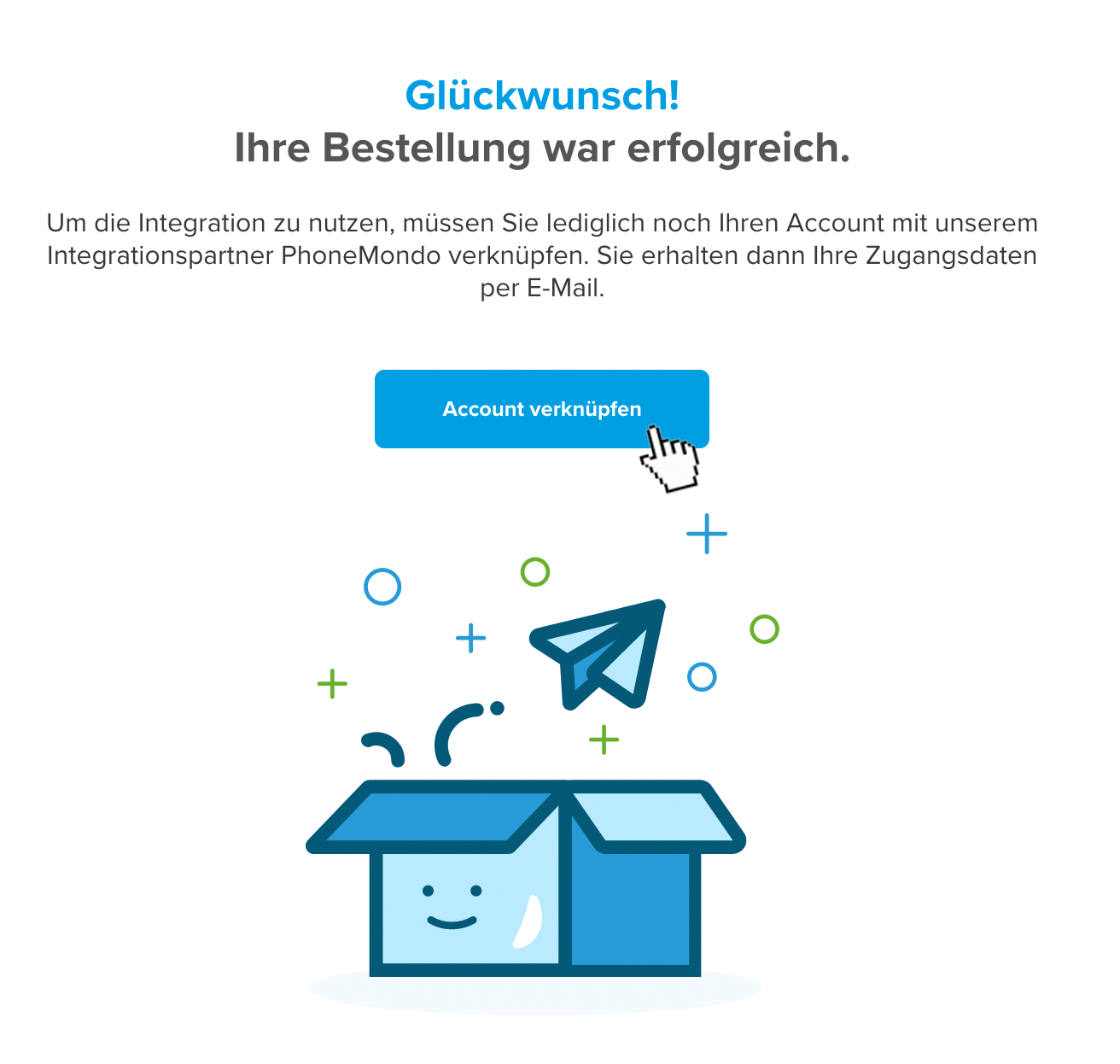 Placetel: Lizenzvertrag akzeptieren - Placetel: Klicken Sie auf Account verknüpfen. Sie werden jetzt zur PhoneMondo Seite weitergeleitet.
