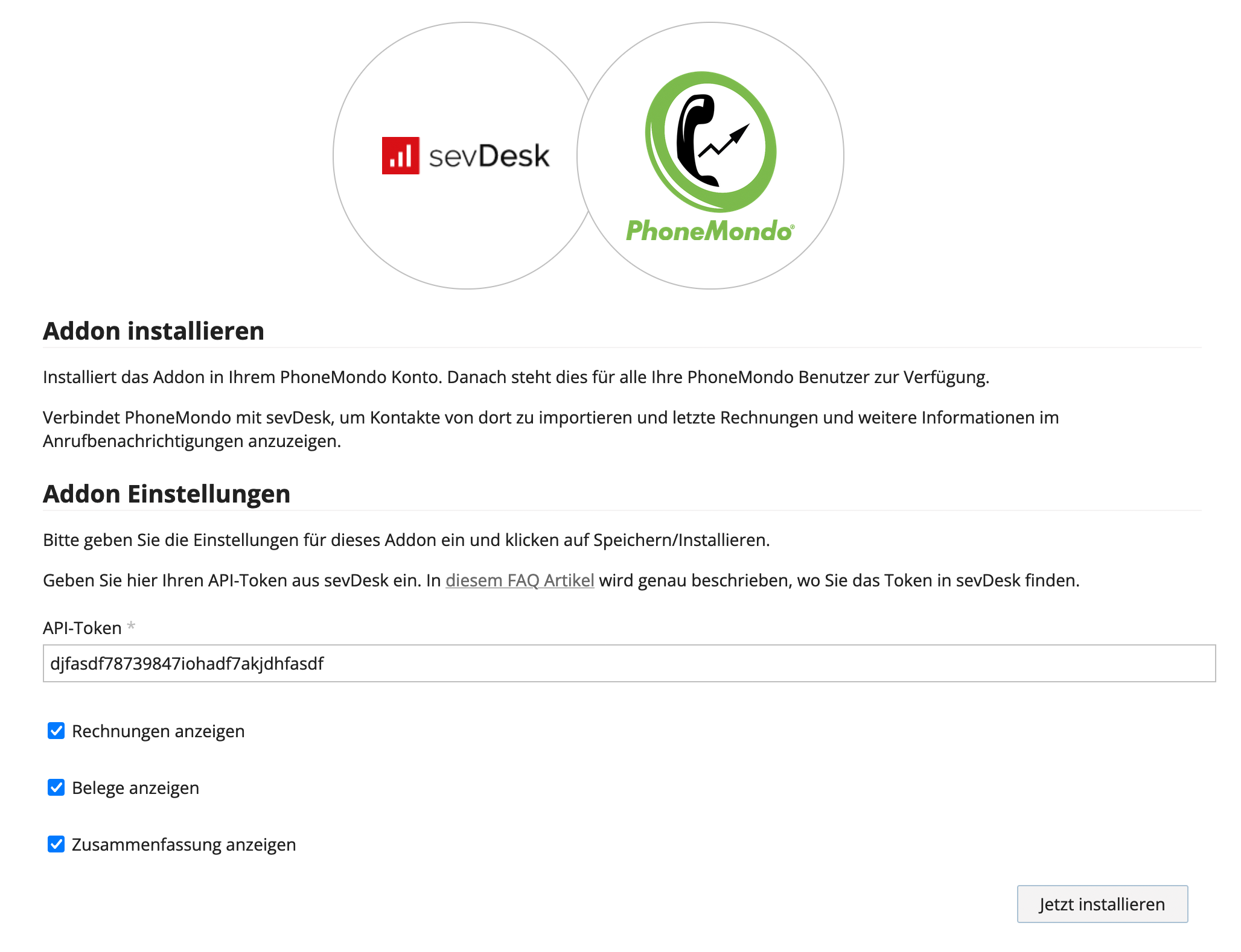 sevDesk: sevDesk API Token finden - PhoneMondo: Tragen Sie diesen API Token bei phoneMondo ein. Klicken Sie Jetzt installieren.