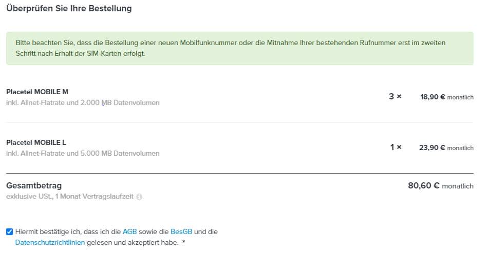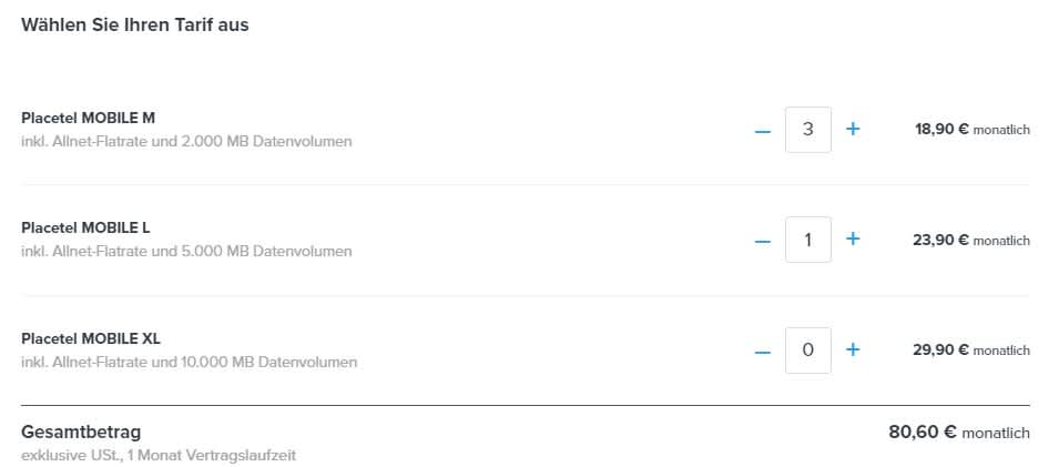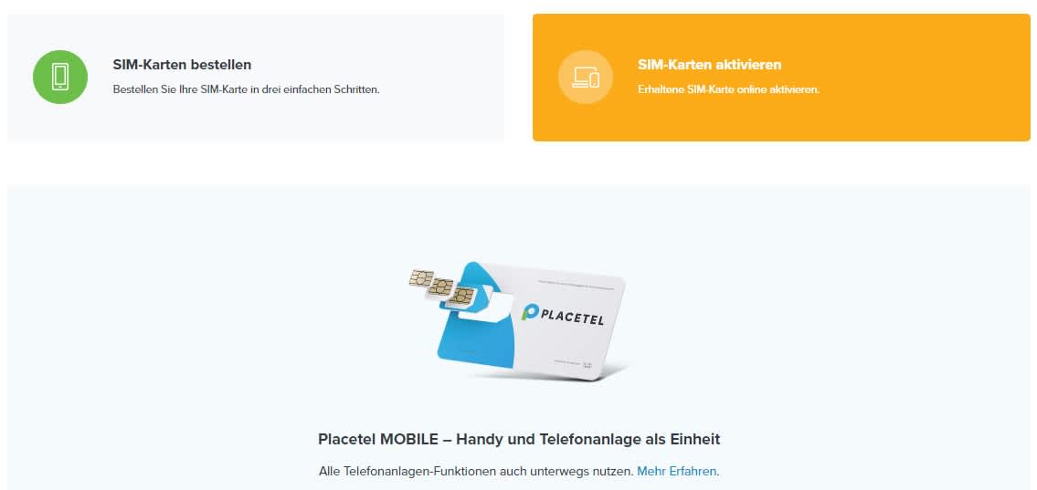 - Bei Placetel Mobile beginnt die monatliche Abrechnung bereits mit der Bereitstellung von SIM-Karten, nicht erst nach der Aktivierung der SIM-Karten.