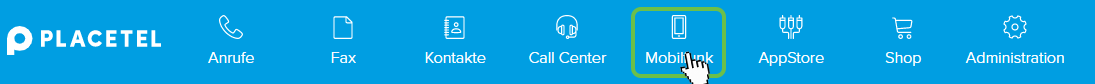 Ihr Mobiltelefon wird als vollwertige Nebenstelle eingebunden und Sie können viele Funktionen aus Ihrer Telefonanlage auch mobil zu nutzen. Die neue Placetel Mobile Option erreichen Sie ganz einfach über den Menüpunkt Mobilfunk.