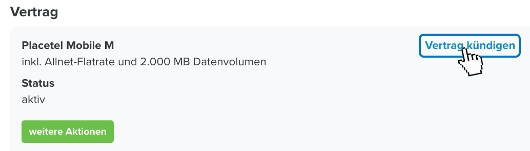 Ihren Placetel Mobile Vertrag kündigen Sie, indem Sie im Webportal auf den Reiter Mobilfunk navigieren.