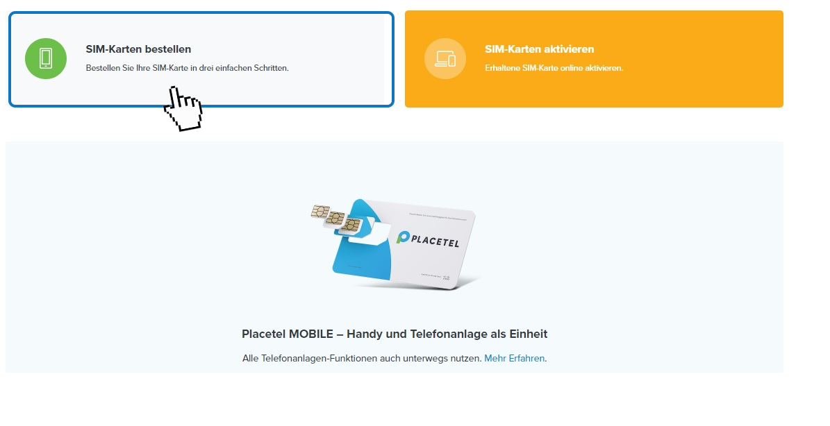 Bitte beachten Sie, dass Placetel Mobile Bestellungen nur über den Hauptaccount Ihres Unternehmens möglich sind und Sie sich außerhalb der kostenlosen Testphase befinden müssen. Die Aktivierung von SIM-Karten ist jedoch für alle Nutzer mit Adminsitratorrechten möglich.