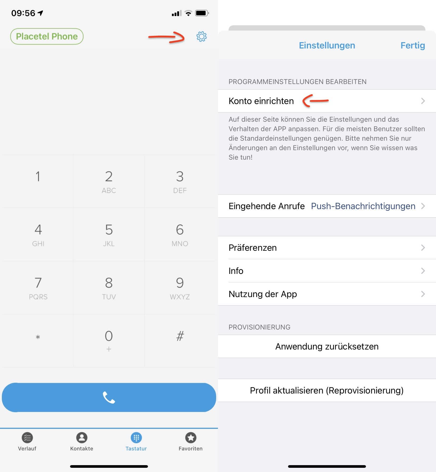 beeinflusst wird. Stellen Sie hier sich, dass die Placetel APP immer erreichbar ist.