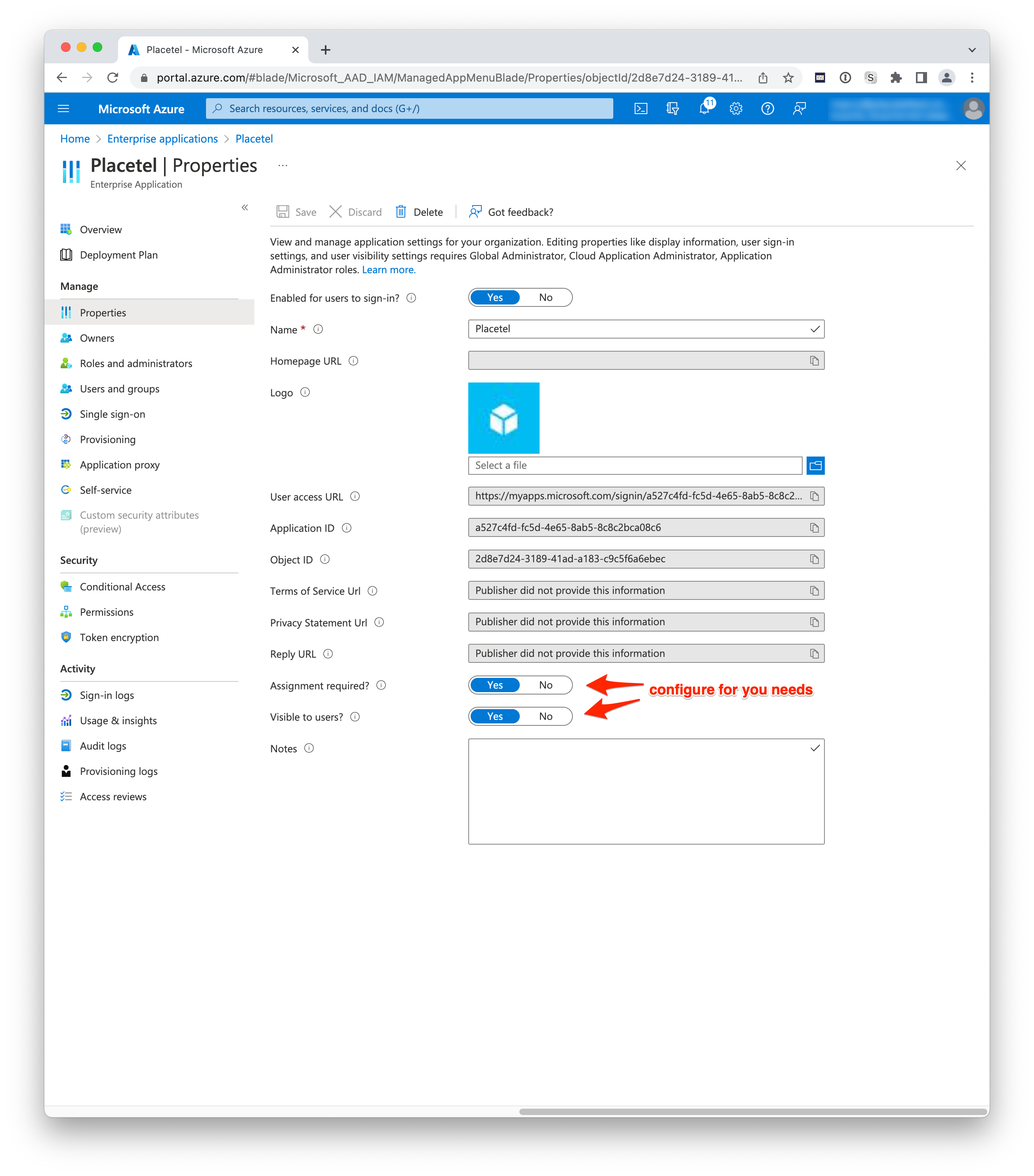 Microsoft: User hinzufügen - Klicken Sie auf Properties und passen Sie die Felder Assignment required und Visible to User nach Ihren Bedürfnissen an.