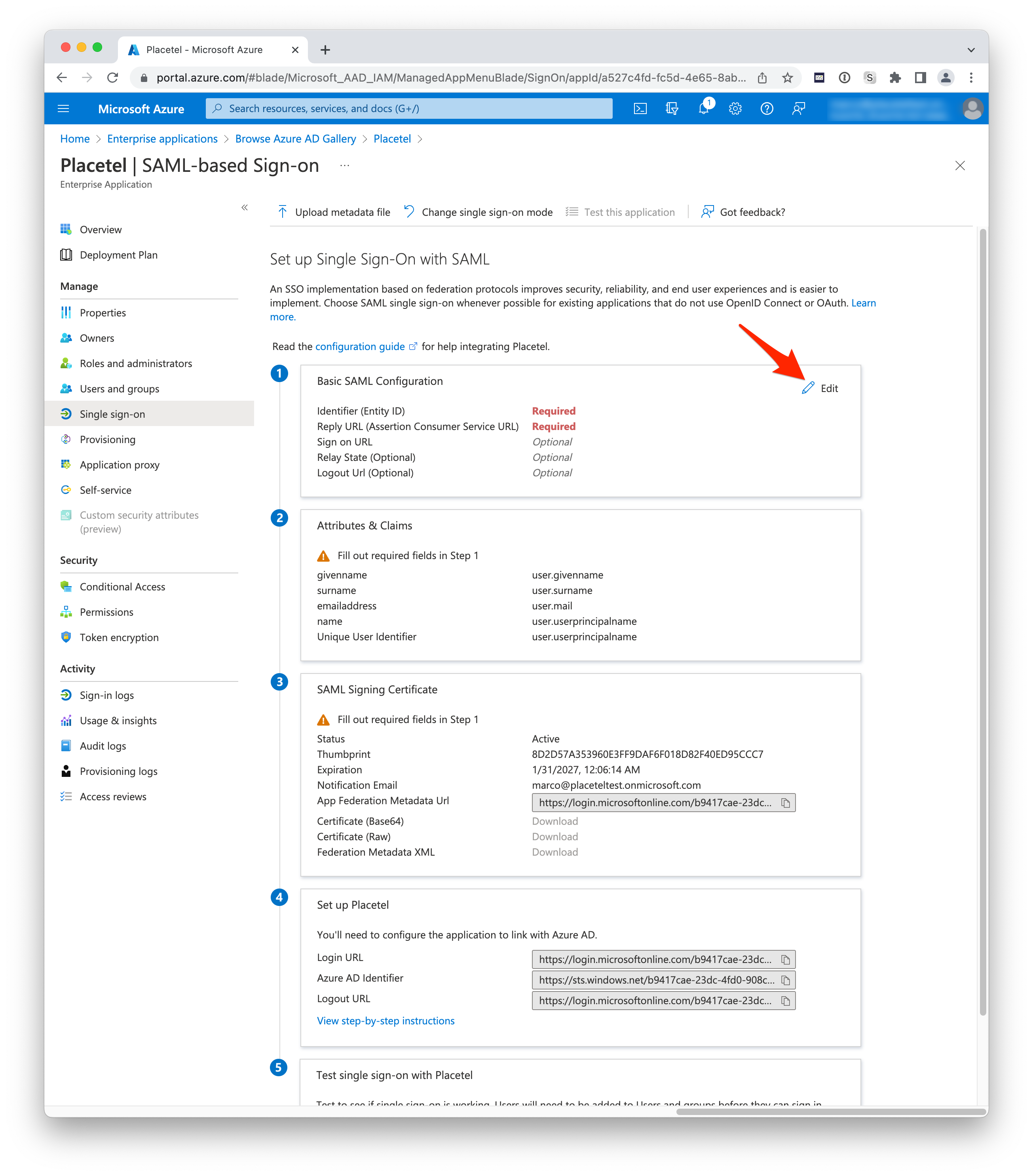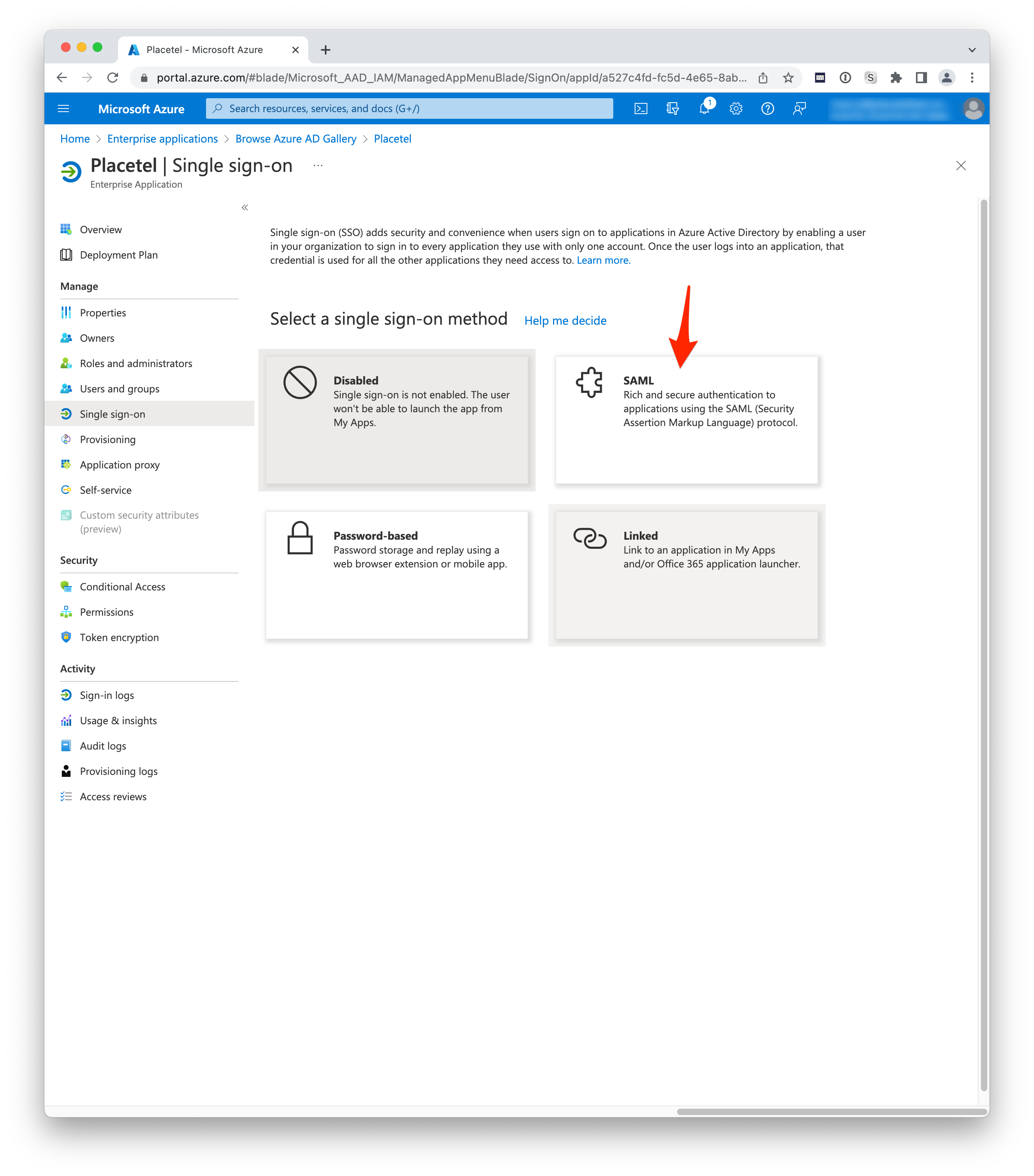 Microsoft: Set Up Single Sign On - Die Sign-In Methode ist SAML.