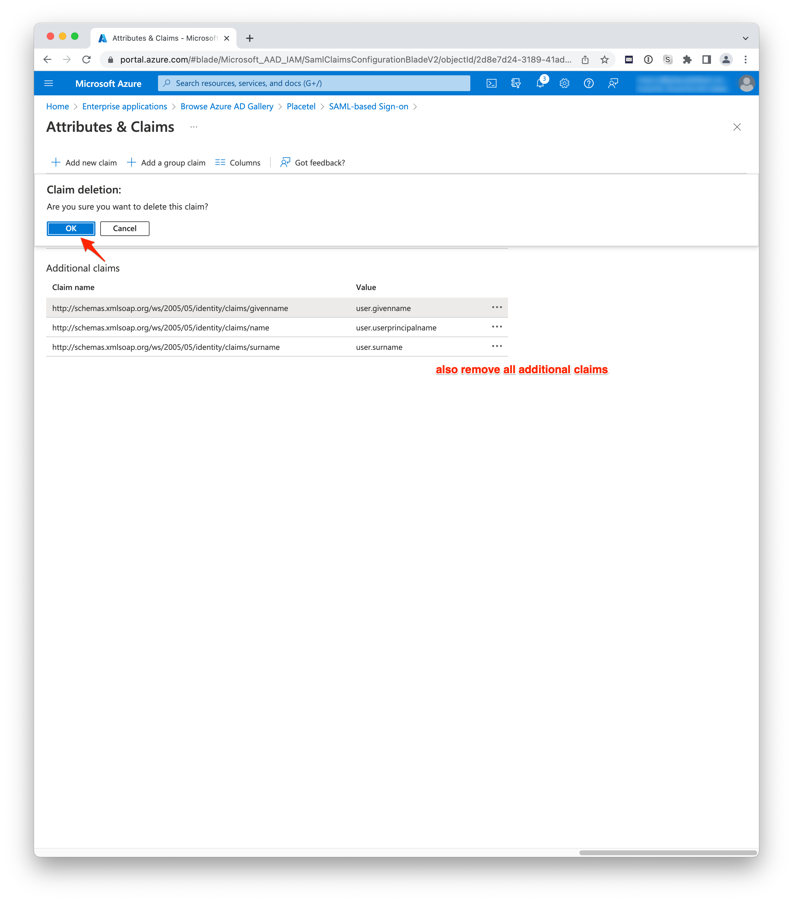 - Editieren Sie die Attribute und löschen Sie alle additional Claims.